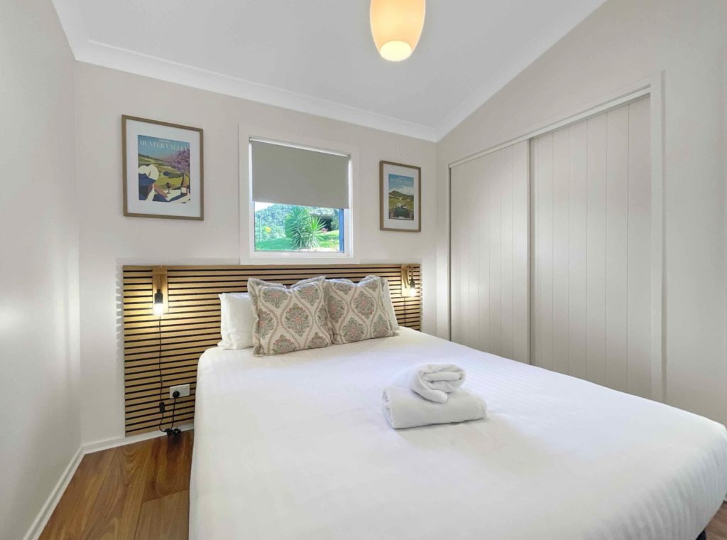 Spend your days unwinding in the pool, looking across the sweeping valley views from the BBQ area, exploring local wineries or simply enjoying the peace of your private deck. In the evenings, savour a complimentary bottle of local wine as the sun sets over the hills and the Hunter Valley slows into night.